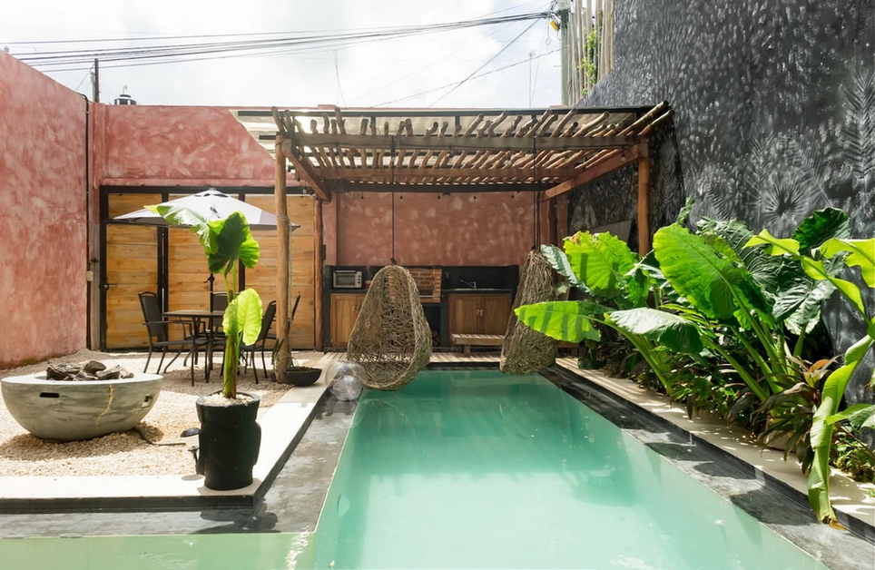 The villa offers ample space for socializing while also providing plenty of quiet corners for relaxation. Just a short walk from Tulum's town center, it's ideally located for a night out to experience the local culture—and perhaps enjoy a cocktail or two.